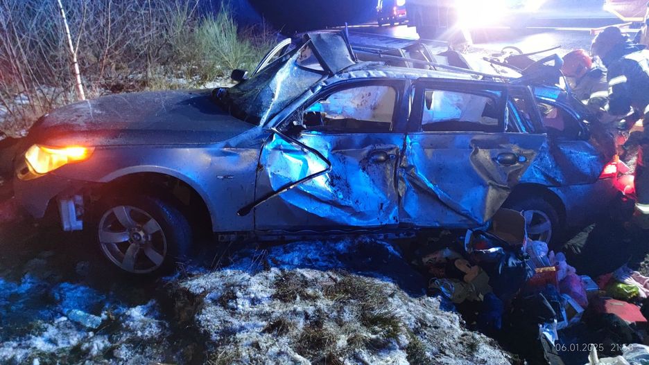 Kierujący pojazdem BMW 27-letni mieszkaniec woj. kujawsko-pomorskiego, w wyniku niedostosowania prędkości do panujących warunków na drodze, stracił panowanie nad pojazdem, w wyniku czego, zjechał na przeciwległy pas drogi, gdzie auto dachowało. Kierujący i dwaj pasażerowie w wieku 32 i 5 lat trafili do szpitala.