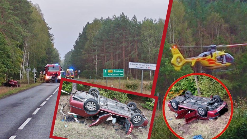 – W wyniku zderzenia pojazd marki Skoda zjechał z drogi i dachował. Kierowca Skody z ciężkimi obrażeniami ciała został zabrany przez Lotnicze Pogotowie Ratunkowe do szpitala – poinformował nas asp. Damian Pachuc z Komendy Powiatowej Policji w Złotowie.