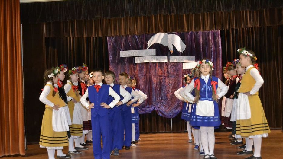 Widowisko nagrodzone gromkimi brawami przez widzów- uczniów przygotowali nauczyciele naszej szkoły: pani Małgorzata Jakóbek, pani Edyta Kałużna, pani Barbara Tucholska, zaś wspaniała dekoracja sceny i sali to dzieło pani Elżbiety Kwasek i pani Katarzyny Chyły. Nauczyciele otrzymali gorące podziękowania od p. Dyrektor za wspaniałą lekcję historii i patriotyzmu przekazaną słowem, muzyką i tańcem.