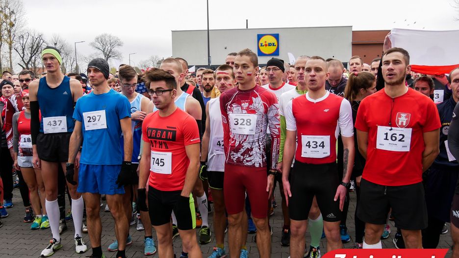 Prawie 700 osób stanęło na starcie Biegu Niepodległości w Pile. Punktualnie o 12.00 uczestnicy biegu i mieszkańcy Piły i regionu odśpiewali Hymn Państwowy.