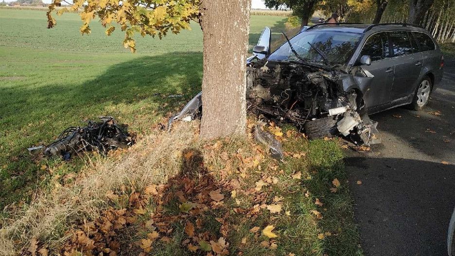 Kierujący autem, mieszkaniec Bobolic, chcąc uniknąć zderzenia, ratował się szybkim skrętem w prawo. Niestety uderzył w drzewo. Cały przód samochodu został zniszczony. Z pojazdu wypadł też silnik. Na szczęście kierujący nie odniósł żadnych obrażeń ciała.