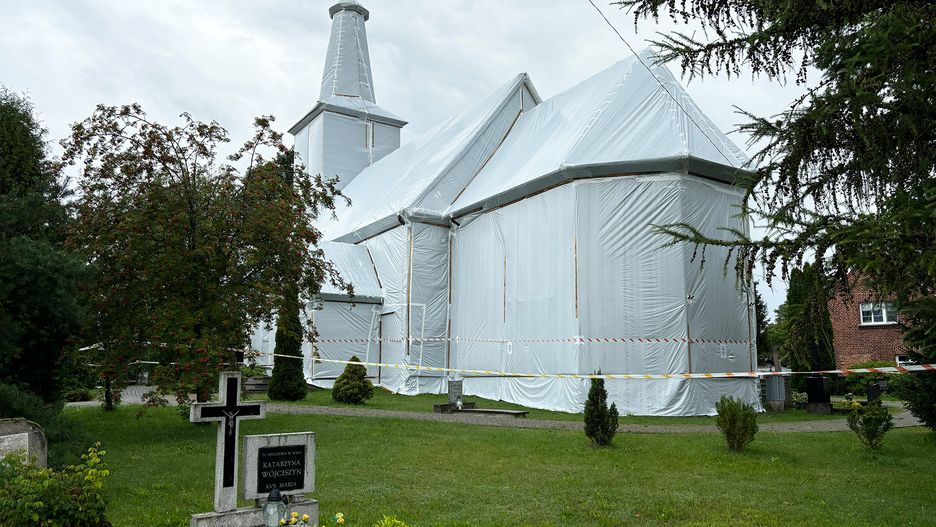 Opakowany białą folią kościół – taki widok jeszcze do jutra można zobaczyć w Gwieździnie. Trwa tam fumigacja zabytkowej świątyni. Pod koniec tygodnia w kościele na nowo odprawiane będą msze święte.