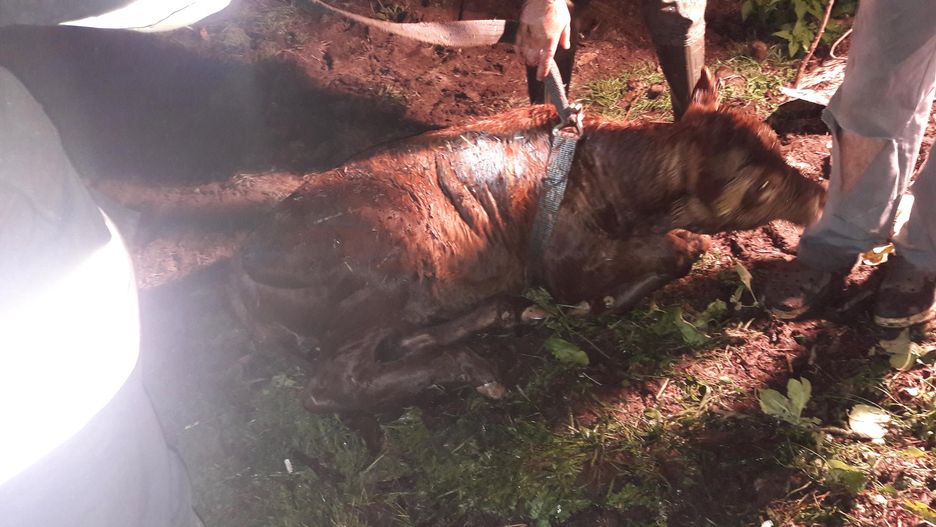 Druhowie musieli najpierw oświetlić teren, a następnie za pomocą specjalnych pasów, wyciągnąć zwierzę z głębokiej studni.