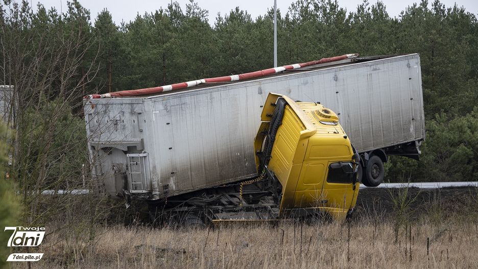 Ciężarówka z naczepą uległa tzw. złożeniu. Nikt w tym zdarzeniu nie ucierpiał. Kierujący, 24-letni mieszkaniec powiatu konińskiego był trzeźwy.