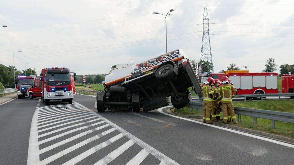 Cysterna z paliwem wypadła z jezdni