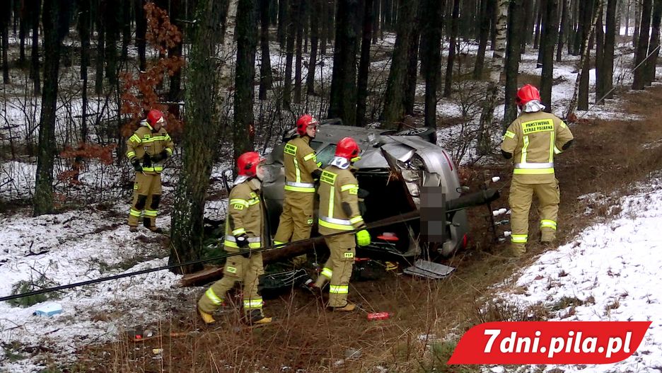 Dzisiaj około godz. 16.20 doszło do dachowania samochodu osobowego na drodze między Piłą a Zelgniewem.