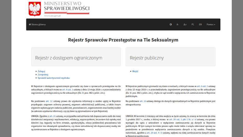 W części ogólnodostępnej znalazły się imiona i nazwiska oraz fotografie 768 osób. To głównie pedofile, którzy dopuścili się gwałtów na dzieciach poniżej 15. roku życia i sprawcy gwałtów popełnionych ze szczególnym okrucieństwem. Spośród sprawców czynów popełnionych od 1 października 2017 r. do rejestru publicznego trafiają dodatkowo także recydywiści – jeśli którekolwiek przestępstwo na tle seksualnym popełnili na szkodę małoletniego (do 18. roku życia) i zostali uprzednio skazani na karę pozbawienia wolności bez warunkowego zawieszenia jej wykonania.
