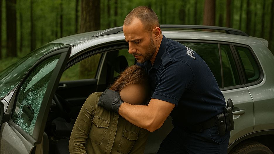 Dramatyczna akcja w lesie pod Chodzieżą! Policjant wybił szybę i uratował życie kobiecie