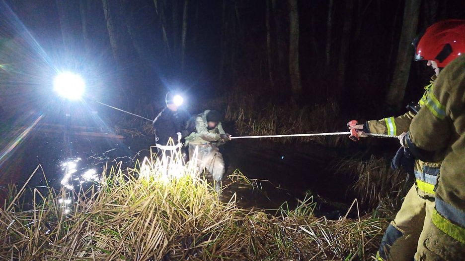 Przypominamy, że poruszanie się po terenach podmokłych i bagnistych może być bardzo niebezpieczne. W przypadku zaistnienia podobnej sytuacji należy niezwłocznie wezwać służby ratownicze pod numer alarmowy 112.