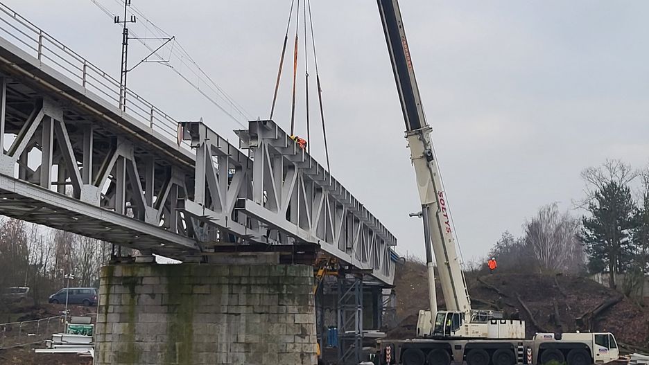 W Obornikach rozpoczęto montaż drugiej nitki mostu kolejowego, kluczowej dla usprawnienia ruchu na trasie Poznań–Piła. Na plac budowy trafiły już ogromne, ponad 500-tonowe przęsła, które zostaną połączone w konstrukcję o długości prawie 154 metrów. Specjalistyczny dźwig ustawi każdy z elementów na istniejących podporach tuż obok działającej przeprawy.