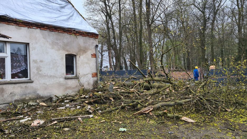 Ubytki w dachu zabezpieczono za pomocą plandeki dachowej. Podczas zdarzenia nikt nie przebywał w budynku, a mieszkańcy (2 osoby) najbliższą noc spędzili u rodziny. O zdarzeniu poinformowano Powiatowego Inspektora Nadzoru Budowlanego. W działaniach trwających dwie godziny brały udział 2 zastępy straży pożarnej (7 strażaków) oraz pogotowie energetyczne.