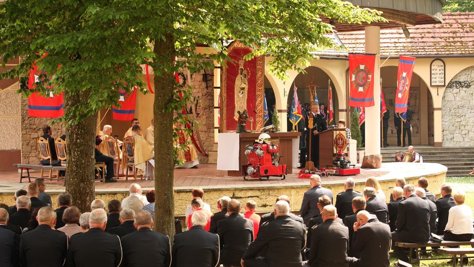 Tegoroczne uroczystości zaplanowano na sobotę 12-go maja. Do Sanktuarium Maryjnego przybyli przedstawiciele strażaków z całego regionu. Uroczystości rozpoczęło wprowadzenie pocztów sztandarowych oraz powitanie przybyłych gości, w tym parlamentarzystów oraz przedstawicieli samorządów różnego szczebla.