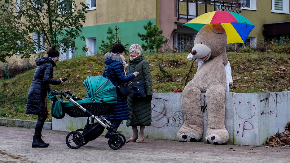 Zabawy z pluszowym przyjacielem pamięta każde dziecko. Dzisiaj w Pile przy ul. Królowej Jadwigi stanął ponad 2-metrowy pluszowy Miś, który pozdrawia przejeżdżających. Świetny pomysł! Gratulujemy!