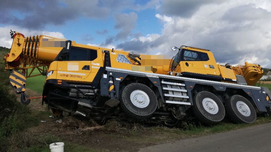 Dzisiaj do Stanowiska Kierowania Komendanta Powiatowego Państwowej Straży Pożarnej w Pile wpłynęło zgłoszenie o zdarzeniu drogowym na trasie pomiędzy miejscowościami Osiek nad Notecią, a Krostkowo (gm. Wyrzysk). Informacja mówiła o dźwigu, który się przewrócił.