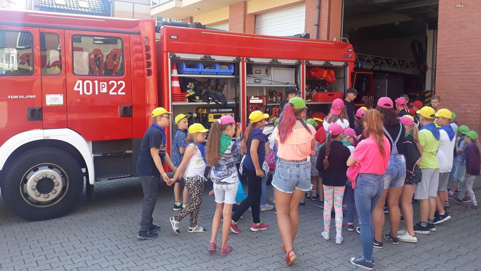 Ponadto uczestnicy półkolonii lub kolonii odwiedzają siedzibę Jednostki Ratowniczo – Gaśniczej PSP w Chodzieży zapoznając się z ciężką pracą strażaka, otrzymując również pełną wiedzę na temat zagrożeń jakie mogą spotkać podczas wakacyjnego wypoczynku.