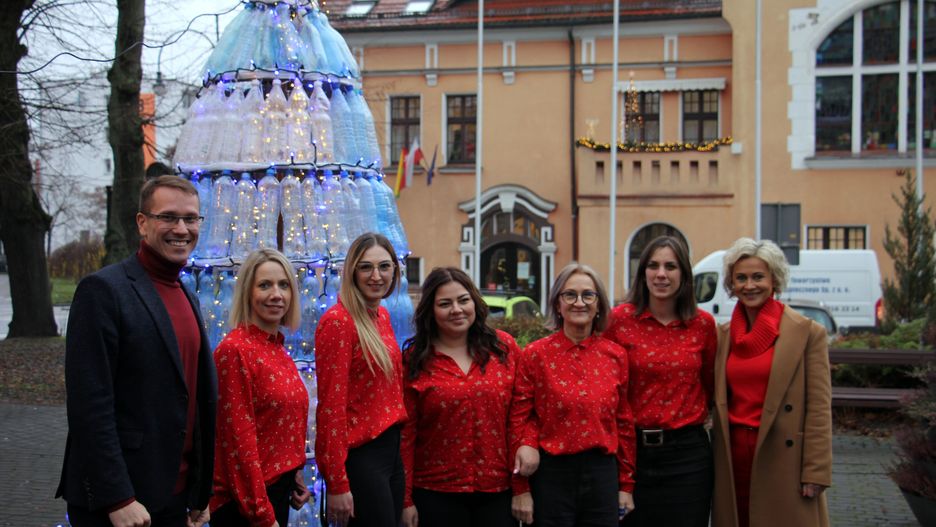 Niezwykła drzewko bożonarodzeniowe stanęło tuż przy pomniku Św. Jana Pawła II, viv a vis drzwi wejściowych do Urzędu Miasta w Trzciance. Na pomysł wykonania takiej ekologicznej choinki wpadli pracownicy Referatu Ochrony Środowiska UM Trzcianki.
