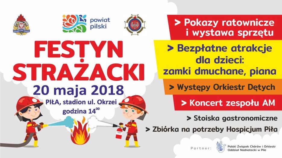 To będzie fajny rodzinny piknik dla każdego. 20 maja, czyli już w najbliższą niedzielę, na stadionie przy Okrzei w Pile zaprezentują się nie tylko profesjonalne służby strażackie, ale także drużyny OSP z całego powiatu pilskiego. Do tego zagrają orkiestry dęte, a maluchy będą mogły skorzystać z darmowych zabaw na dmuchanych zamkach.
