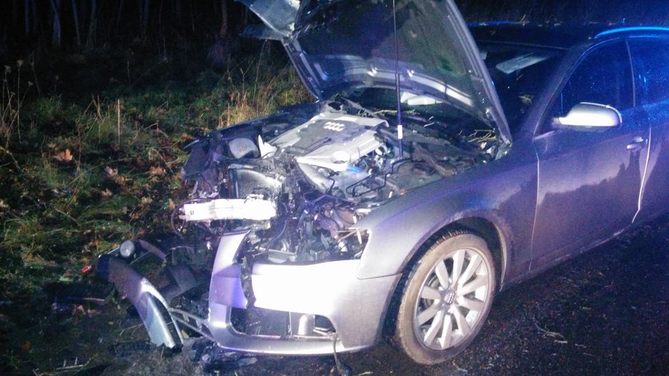 Po przybyciu na miejsce zdarzenia pierwszych jednostek straży pożarnej stwierdzono, że doszło do zderzenia czołowego samochodu osobowego Audi A4 z przydrożnym drzewem. Działania straży pożarnej polegały na zabezpieczeniu miejsca zdarzenia oraz udzieleniu kwalifikowanej pomocy dwóm osobom poszkodowanym biorącym udział w wypadku. Dalsze działania straży pożarnej polegały na odłączeniu akumulatorów oraz usunięciu płynów eksploatacyjnych z jezdni.