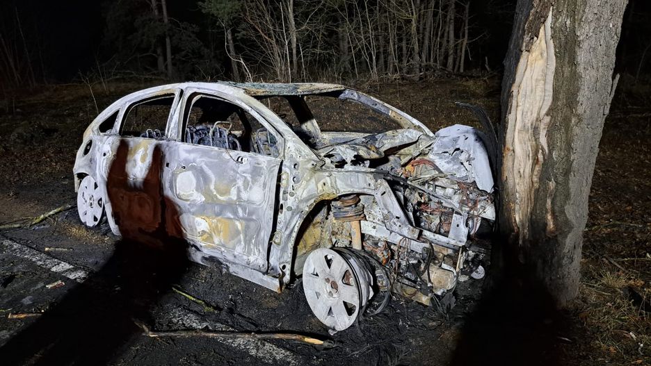 Samochód osobowy uderzył w drzewo i spłonął w nocy z piątku na sobotę w miejscowości Herburtowo w gm. Wieleń. Po ugaszeniu pojazdu w środku strażacy znaleźli ciało.