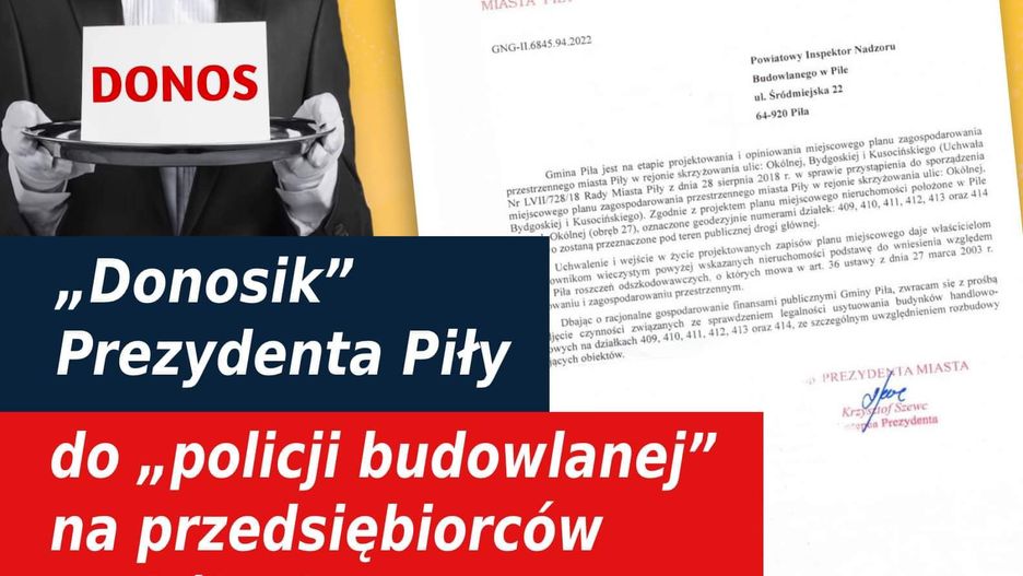 -Pamiętacie niedawny protest mieszkańców ul. Okólnej i przedsiębiorców właścicieli pawilonów handlowych, które funkcjonują już od wielu lat. Bronili „swojego” parkingu i miejsc pracy. Myślę, że jednak czeka Was Szanowni Mieszkańcy jeszcze sporo „utrudnień”. Pod pretekstem przeznaczenia terenu waszych nieruchomości pod tzw. drogę główną prezydent miasta Piły zawiadomił Powiatowego Inspektora Nadzoru Budowlanego, by ten sprawdził np. legalność budowy Waszych pawilonów – pisze starosta pilski. Tyle, że zarządcą tej drogi jest Powiat Pilski – Starostwo Powiatowe w Pile i my nie zamierzamy żadnych zmian na Waszych działkach przeprowadzać. Mówimy o tym już od dawna. Uważamy bowiem, że nie ma sensu burzyć Waszego dorobku życiowego tylko dlatego, że komuś się wyśniło zbudować między rondem im. F. Toboły ( Okólna), a rondem na ulicy Bydgoskiej; 4 pasy ruchu na długości … 170 metrów. Tym bardziej, że niedawno ta droga i ronda przeszły kapitalny remont i budowę, na które wydatkowano ogromne publiczne środki finansowe.Mam nadzieję, że w obronie pilskich przedsiębiorców stanie także Izba Gospodarcza Północnej Wielkopolski w Pile.Uspokajam Was, sprawdziłem i z naszych rejestrów wynika, że każdy z Was około 30 lat temu uzyskał pozwolenie budowlane na realizację pawilonów handlowych od ówczesnego szefa Urzędu Rejonowego w Pile – dodaje Eligiusz Komarowski.źródło: https://www.facebook.com/KomarowskiEligiuszCo o tym sądzicie? Czekamy na Wasze komentarze.