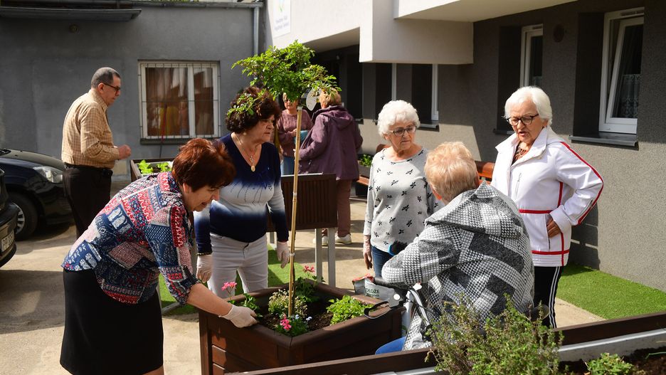 W ramach zajęć ogrodniczych w minioną środę, przed swoją siedzibą sadzili warzywa i kwiaty, w czym pomagali im przedstawiciele władz powiatu.