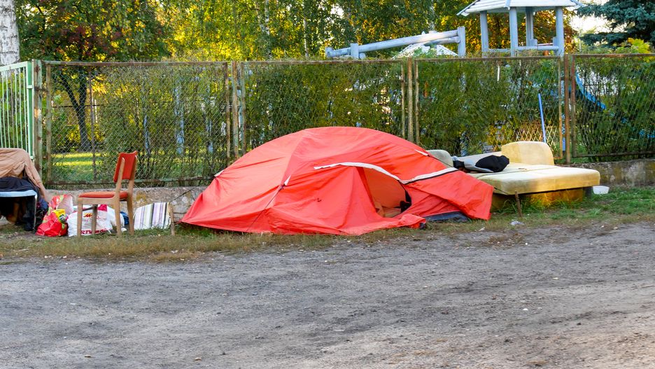Sprawdziliśmy sygnał od naszego Czytelnika i rzeczywiście, opisana sytuacja faktycznie ma miejsce. Przed blokiem, tuż przy krzakach rozbity jest czerwony namiot, w pobliżu stoi krzesło i reklamówki z ubraniami.