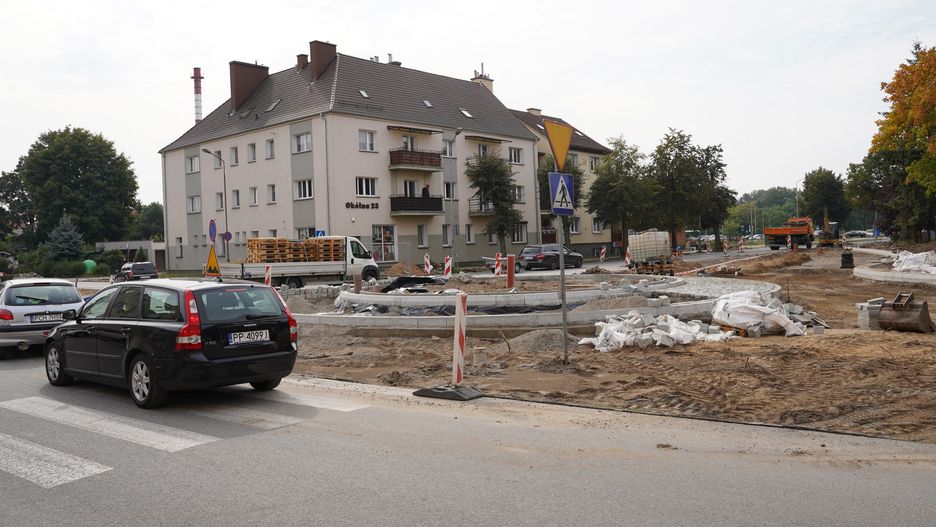 Na skrzyżowaniu ulic Okólnej, Roosevelta i Tucholskiej w Pile widać już zarys nowego ronda.