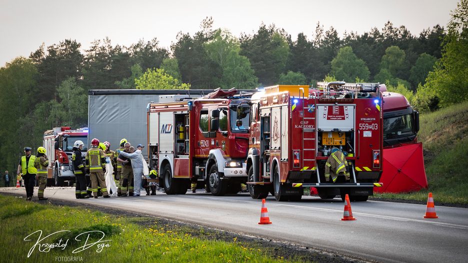 74-letnia kobieta, kierująca pojazdem marki bmw jadąc od strony Bydgoszczy w kierunku Piły, w pewnym momencie zjechała na przeciwległy pas jezdni i zderzyła się czołowo z pojazdem ciężarowym z naczepą. Kierująca bmw poniosła śmierć na miejscu. 52-letniemu kierowcy TIR-a nic się nie stało.