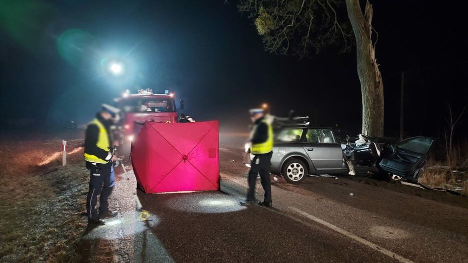 Ze wstępnych ustaleń wynika, że 36-letni kierowca samochodu marki Audi wjechał na przeciwległy pas ruchu i uderzył w drzewo. Siła uderzenia była tak duża, że mężczyzna zginął na miejscu. Utrudniania w ruchu trwały do godz. 23.00.