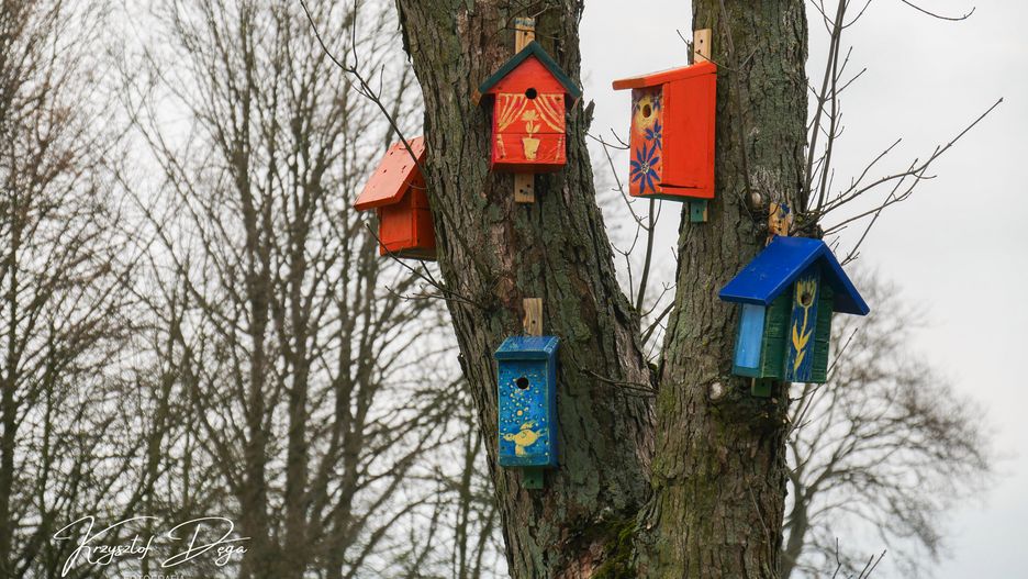 Kolorowe budki na ptaków w Augustowie