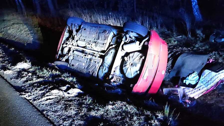 Kompletnie pijana 21-latka doprowadziła do dachowania