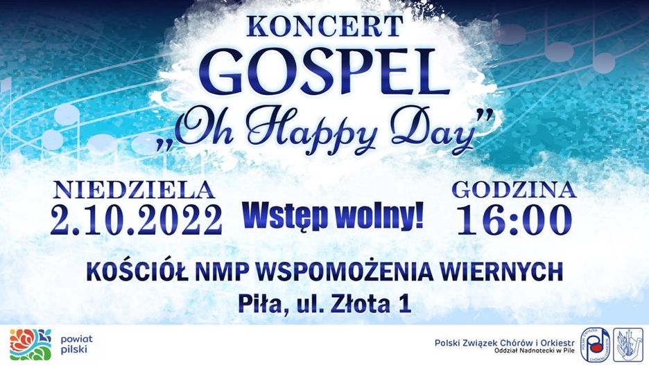 Niezwykłe wydarzenie muzyczne szykuje się w w kościele pw. NMP Wspomożenia Wiernych w Pile. Już w najbliższą niedzielę odbędzie się tam I Festiwal Pieśni Chóralnej – Koncert GOSPEL „ Oh Happy Day”.