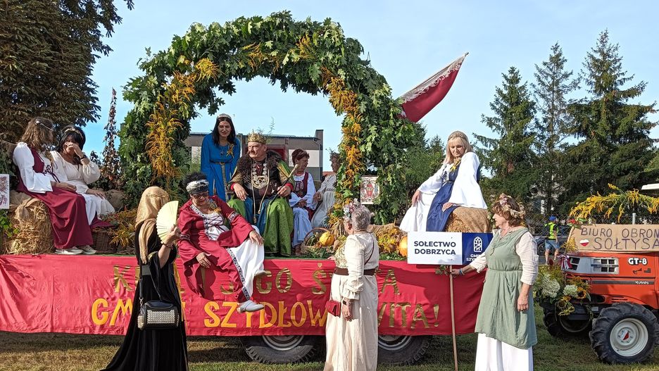 Na specjalnie przygotowanej platformie, udekorowanej zielenią, kwiatami i płodami rolnymi, zasiadł Bolesław Chrobry w królewskich szatach. Towarzyszyły mu dwórki i rycerze w strojach stylizowanych na epokę średniowiecza. Całość przygotowało sołectwo Dobrzyca, które włożyło wiele serca i pracy, aby przenieść uczestników wydarzenia w czasy wczesnopiastowskie. Widok króla, otoczonego przez damy dworu i poddanych, wzbudził ogromne zainteresowanie i aplauz publiczności. Takie połączenie dożynkowego korowodu z elementami historii sprawiło, że wydarzenie nabrało unikalnego charakteru.