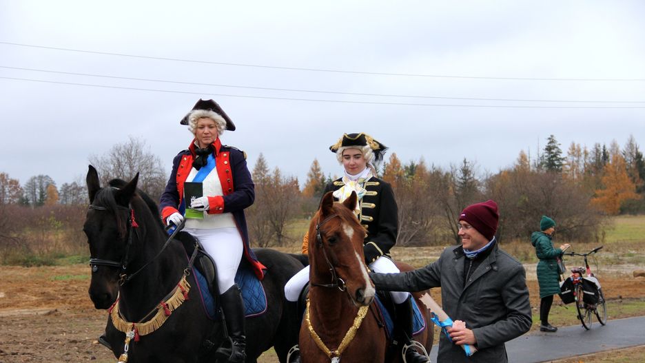 I tak oto przeszłość spotkała się z przyszłością – król Stanisław August Poniatowski w towarzystwie dworzanina przybył na otwarcie na koniu i przekazał starodawną mapę Trzcianki obecnemu Burmistrzowi Krzysztofowi Jaworskiemu, otrzymując w zamian nowoczesny plan Trzcianki.