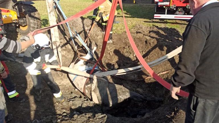 Dramatyczna akcja ratowania krowy, która wpadła do studni. Do zdarzenia doszło w miejscowości Rataje koło Łobżenicy.