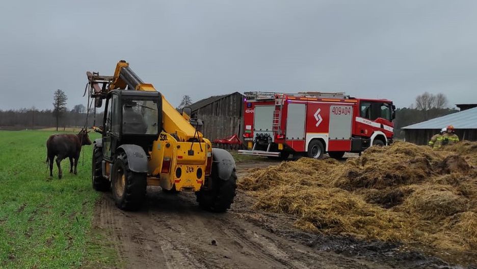Krowa wpadła do zbiornika na gnojowicę