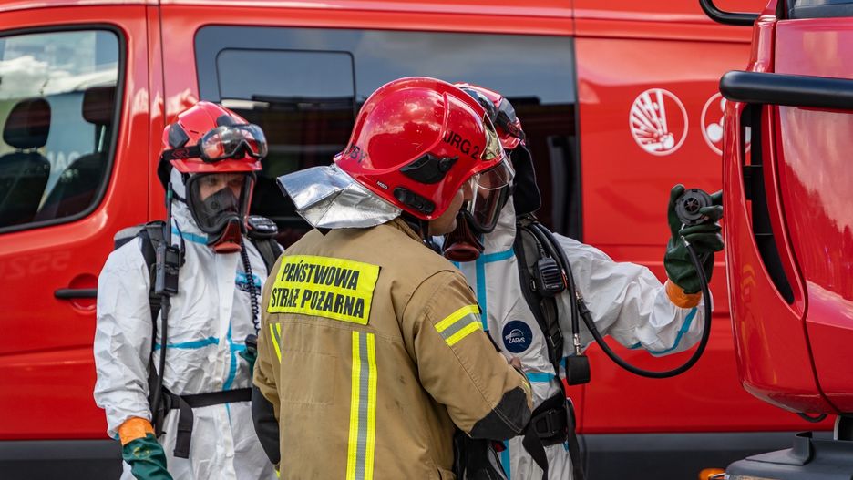 Na płycie pilskiego lotniska realizowany był scenariusz symulowanego zdarzenia masowego – zderzenia autobusu z cysterną przewożącą olej hydrauliczny. W wyniku wypadku następuje kontrolowane rozszczelnienie cysterny, wyciek substancji - możliwe skażenie chemiczne!