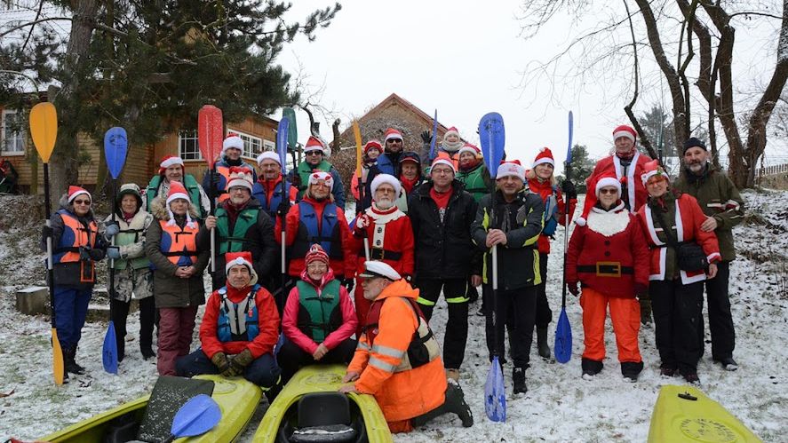 W sobotę, 3 grudnia, spadł lekki śnieg, więc Mikołaj w asyście trzydziestu kajakarzy wypłynął na Gwdę.