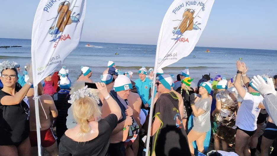 I te tłumy poprzebieranych radosnych ludzi z całej Polski, a wśród nich nasza grupa z Pilskiego Klubu Morsów EUFORIA w sile ponad 60 osób. Część z nas uczestniczyła w zlocie już od piątku, część dojechała na własną rękę w sobotę a niektórzy tylko na samą niedzielną paradę i wspólną kąpiel.
