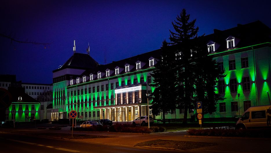 By podziękować za ciężką służbę na wschodzie Polski, budynek Starostwa Powiatowego w Pile podświetlany jest na kolor zielony.