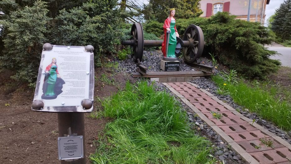 Pomnik Św. Katarzyny znajduje się na pilskim dworcu PKP.