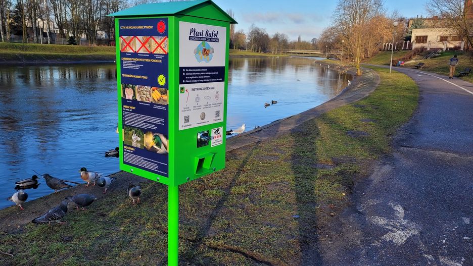 By pozyskać porcję zdrowej karmy dla ptaków wystarczy wrzucić do środka 2 złote. Nowe urządzenia znajdują się w okolicy mostu Bolesława Krzywoustego i kładki przy Szkole Muzycznej.