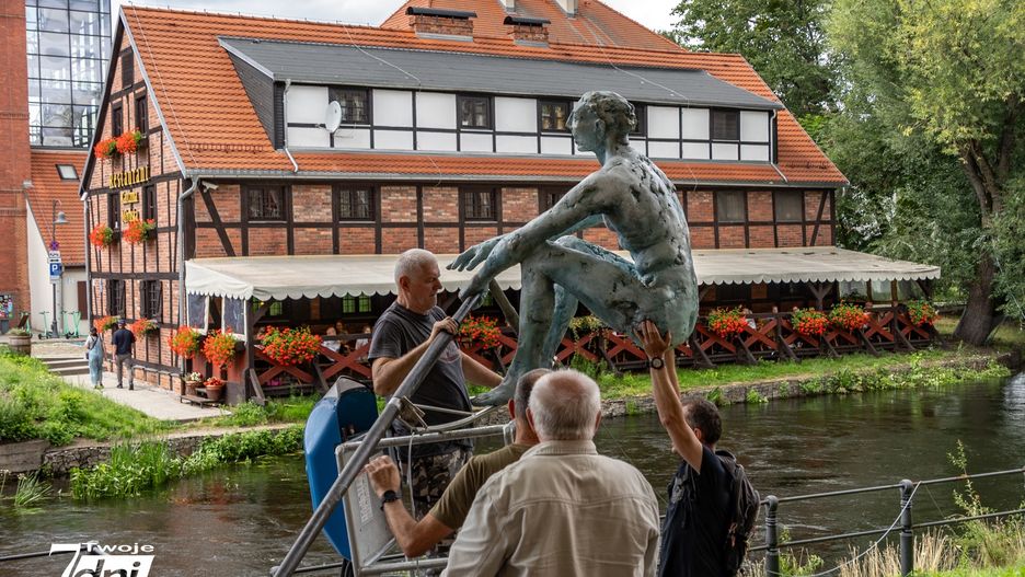 Rzeźba "Wioślarz" została zamontowana we wtorek, w samym sercu Bydgoszczy, nad Młynówką. Instalacji nowej rzeźby w miejskiej przestrzeni przyglądały się tłumy bydgoszczan oraz turystów.