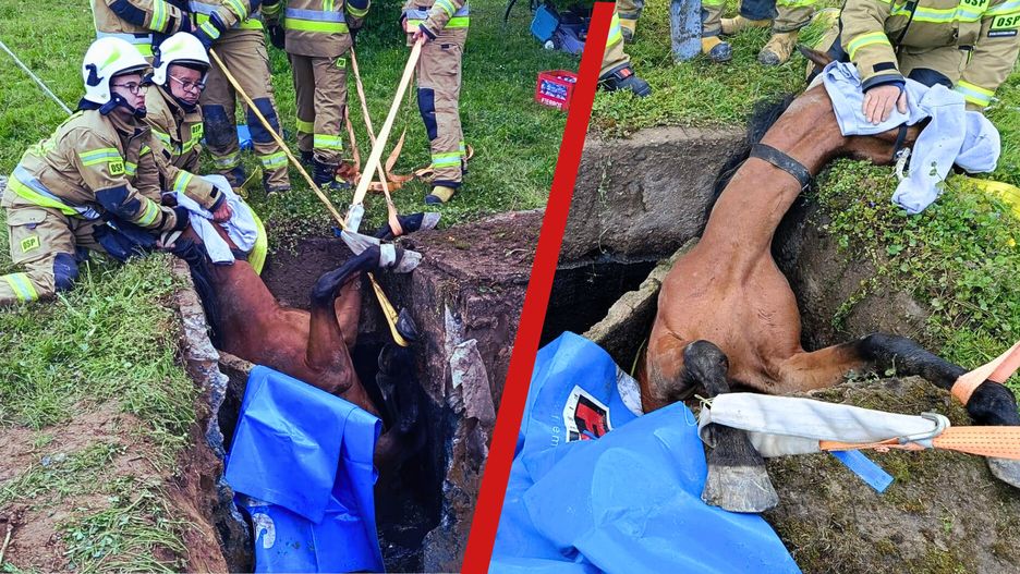 Niezwykła akcja strażaków – ratowali konia uwięzionego w podziemnym zbiorniku