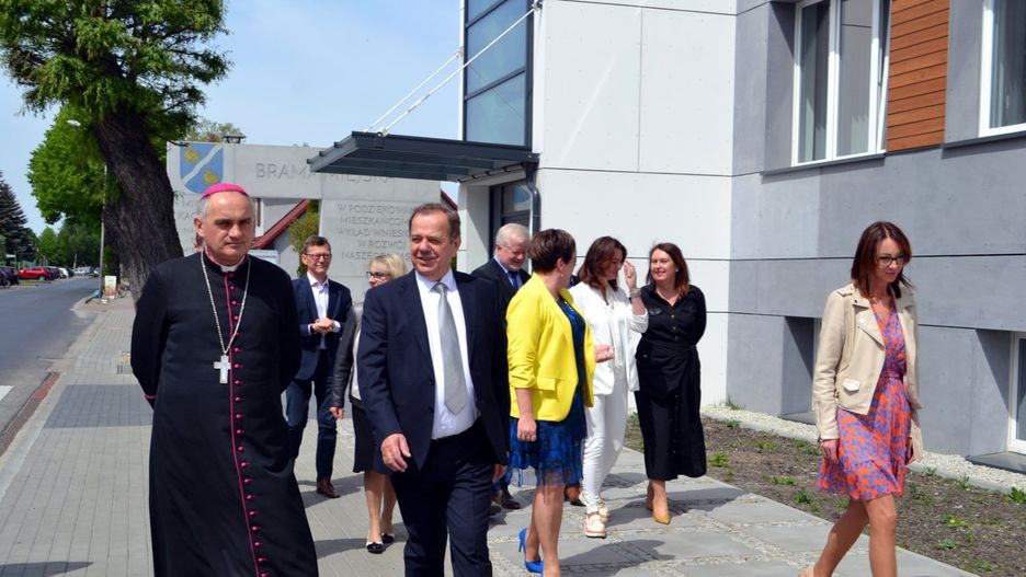 Biskup przywitał się ze wszystkimi pracownikami, życząc dobrej pracy oraz dokonał symbolicznego odsłonięcia tablicy pamiątkowej przy urzędzie oraz Bramy Miejskiej.