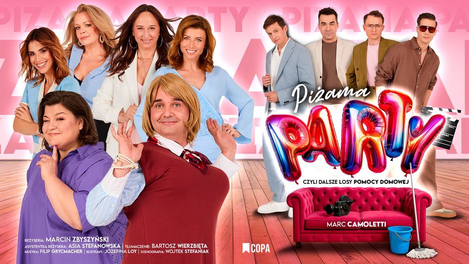 Zapraszamy 14.09.2025 r. o godz 15:30 i 18:30,Regionalne Centrum Kultury w Pile. Piżama Party, to wystrzałowa farsa mistrza gatunku Marca Camolettiego w tłumaczeniu Bartosza Wierzbięty (Pomoc Domowa, Boeing Boeing).