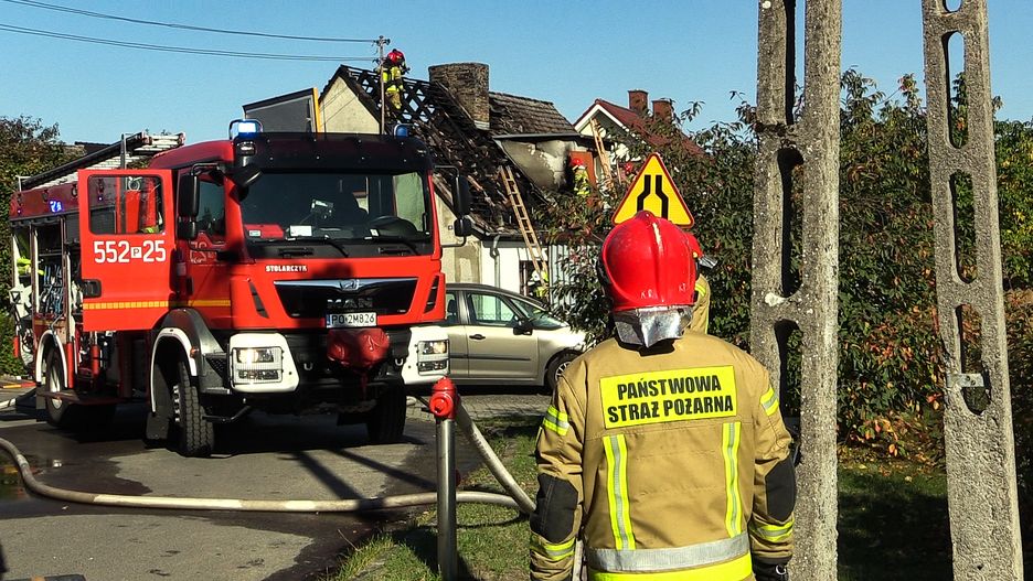 Pożar wybuchł w sobotę na poddaszu budynku i błyskawicznie się rozprzestrzenił. Gdy strażacy dojechali na miejsce budynek całe poddasze było w ogniu.