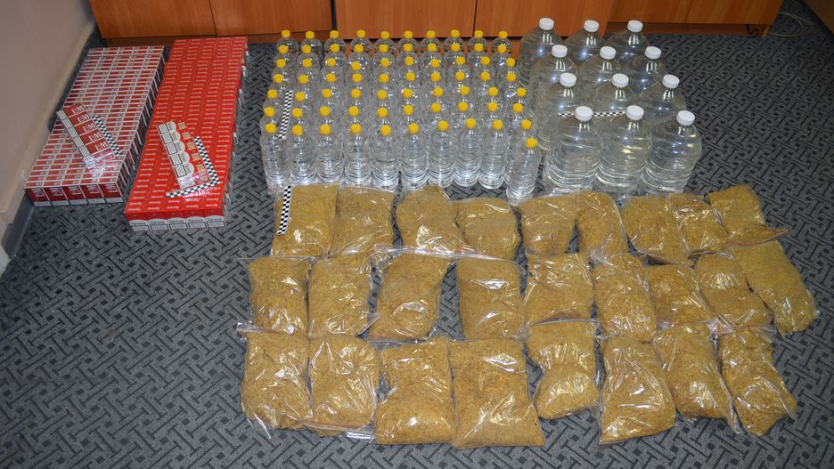 Policjanci zatrzymali do kontroli pojazd marki VW Passat którym kierował 65- letni mężczyzna mieszkaniec powiatu złotowskiego. Podczas kontroli na siedzeniu samochodu policjanci ujawnili 10 litrów alkoholu bez polskich znaków akcyzy. Kryminalni podejrzewali, że mężczyzna może posiadać więcej nielegalnego towaru. Podejrzenia te potwierdziły się podczas przeszukania pomieszczeń mieszkalnych i gospodarczych zatrzymanego mężczyzny, gdzie policjanci zabezpieczyli 13 kilogramów krajanki tytoniowej, 121 litrów litrów alkoholu, oraz 360 paczek papierosów bez polskich znaków akcyzy.