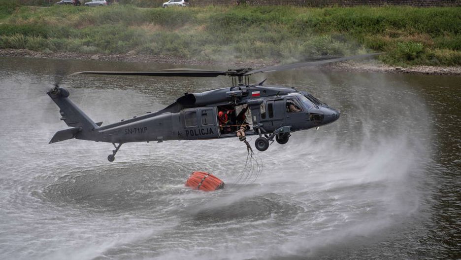 Polscy policjanci i strażacy wylecieli we wtorek po południu z Warszawy policyjnym śmigłowcem S-70i Black Hawk. Maszyna jest wyposażona w specjalny zbiornik na wodę – tzw. bambi bucket o pojemności około 3 tys. litrów.