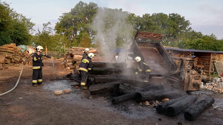 Dwa zastępy OSP Wysoka zostały wezwane do pożaru ładowarki drzewa w miejscowości Rudna. Na miejsce przyjechały jeszcze dwie jednostki Państwowej Straży Pożarnej z JRG nr 2 z Piły oraz policja.